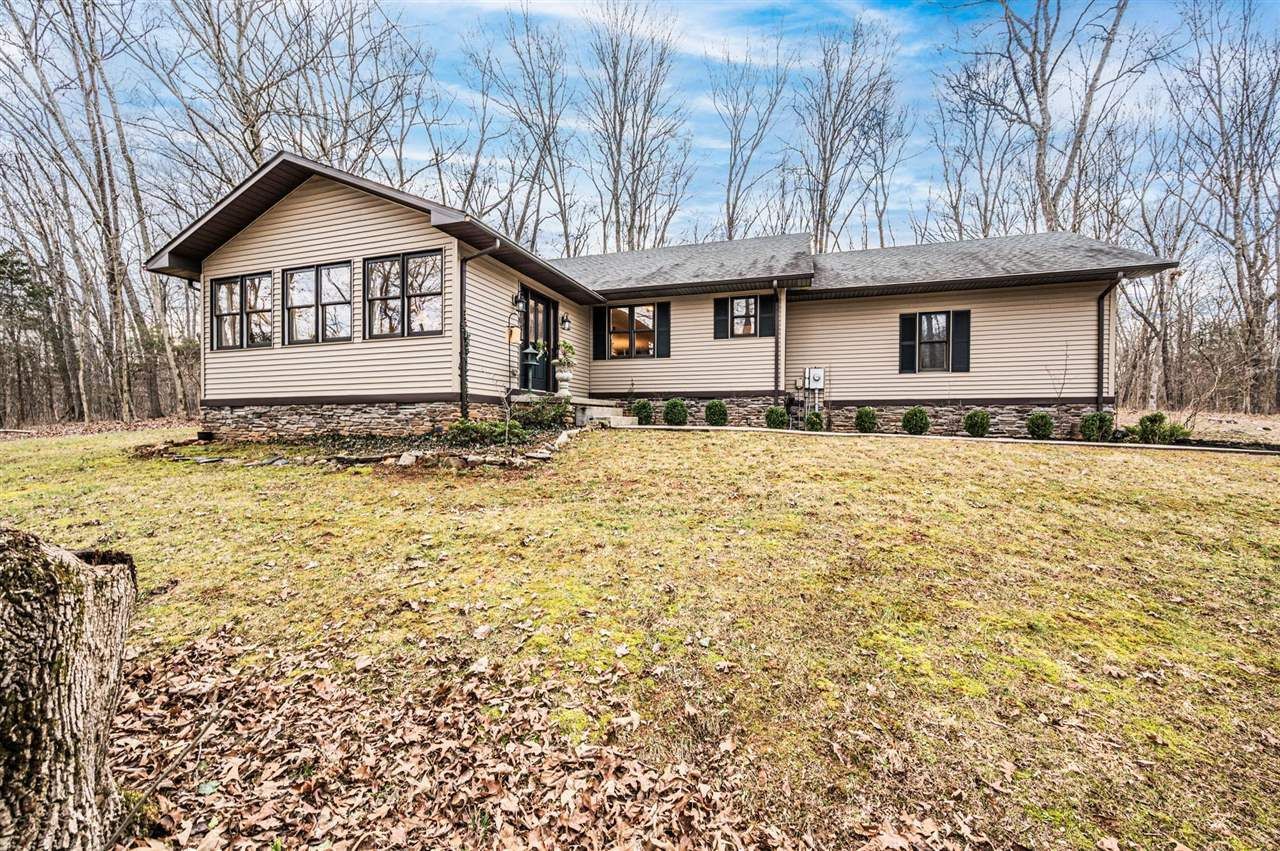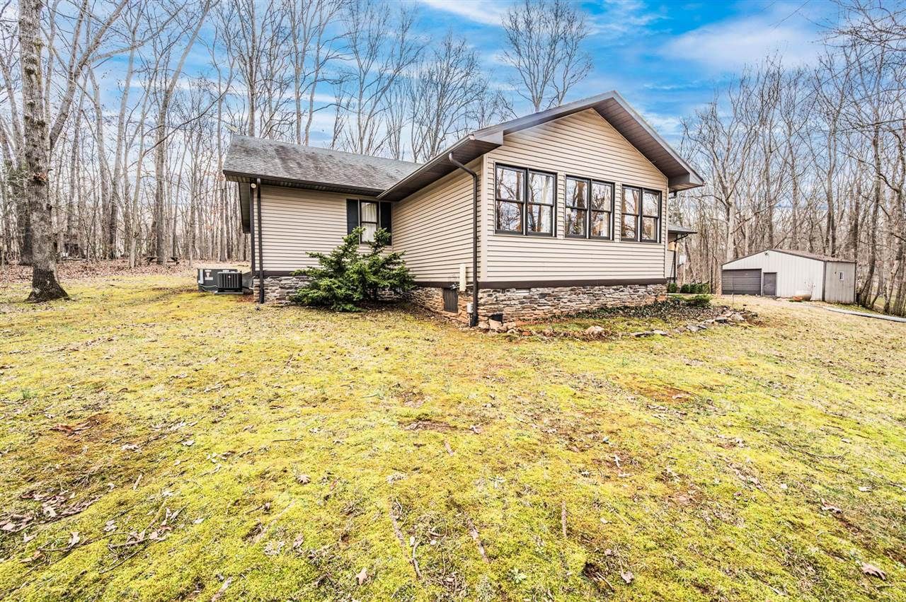 Beautiful setting on 3 wooded acres. All living area on the main level. 3 bedrooms, split floorpan, 3 full baths, sitting room, large dining kitchen area, and detached garage.