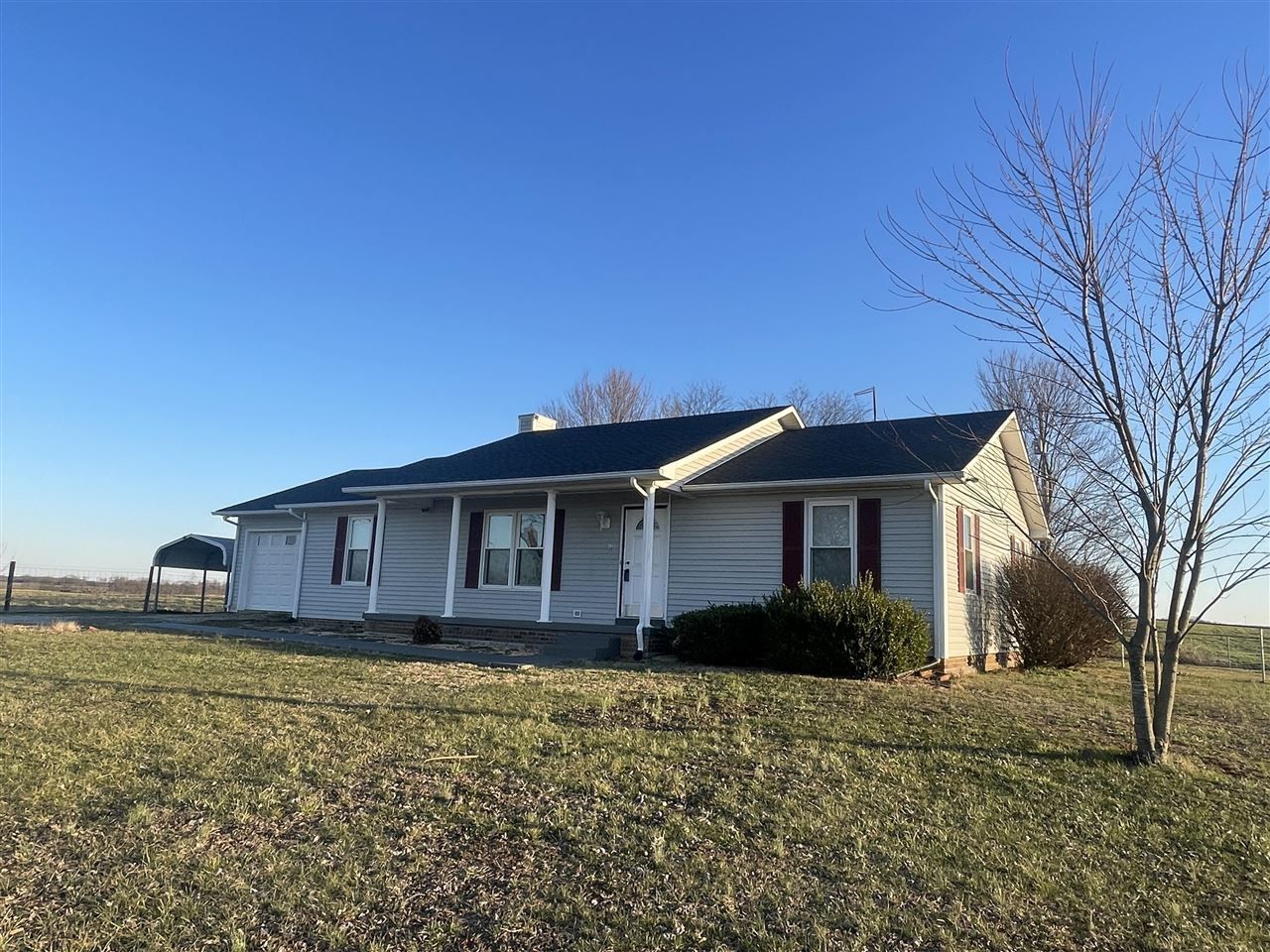 Ranch style 3 bdrm 2 bath home sitting on a 1 acre lot surrounded by rolling pastures and crop fields and only minutes to the conveniences of the city. This home offers an excellent split bedroom floor-plan with a large open living, kitchen and dining area. Interior features include a fireplace, eat in kitchen with tile counters and backsplash, all kitchen appliances included, walk in closets and LVP flooring throughout. Additional amenities include a long asphalt driveway, covered rear deck, 1 car attached garage, 1 car detached carport and a fenced in back yard.