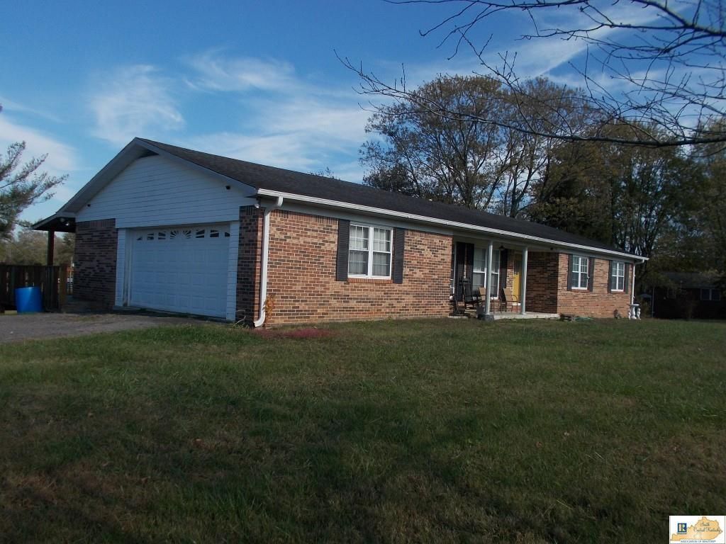 Nice 3 bedroom, 1 bath brick home with single attached and single built in garage. Some new flooring & counter tops, fireplace in the dining area, laundry room on the main floor, and a large corner lot.