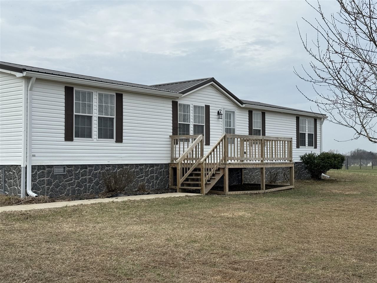 Beautifully renovated 3-bedroom, (split), 2 bath manufactured home on one acre with sweeping farmland views! This spacious 1,848 sq ft home features an open-concept layout perfect for everyday living and entertaining. The eat-in kitchen with dining area offers freshly painted cabinets, a center island with sink, refrigerator, new cooktop and dishwasher, wall oven, and wall microwave. Step through the patio doors onto a brand-new 11×6 covered deck, ideal for relaxing and enjoying the peaceful surroundings. The laundry room includes cabinets, a hanging bar, and its own new 6×8 covered deck for convenient entry and exit. The primary suite has been beautifully updated with a new double vanity, modern lighting, tiled soaking tub surround, and a walk-in closet with wood shelving and hanging bars. The hall bath has been completely remodeled with a new tub and surround, vanity, faucets, and lighting. Enjoy the flexibility of a private front living room???perfect for a home office, playroom, or hobby space???while the family room features a wood-burning fireplace, ceiling fan, and stunning views of the surrounding farmland. Professionally painted throughout and completed with a 10 x 20 attached enclosed storage building that has a roll up door, man door, and 2 windows. This home offers space, privacy, and move-in-ready comfort. 1/2025 New Water Heater, New Pex Insulated Water Lines, HVAC cleaned & serviced 10/2025, New Luxury waterproof flooring including new Luan underlayment throughout, insulated ductwork, new spray foam insulation under carriage professionally installed by 31-W.