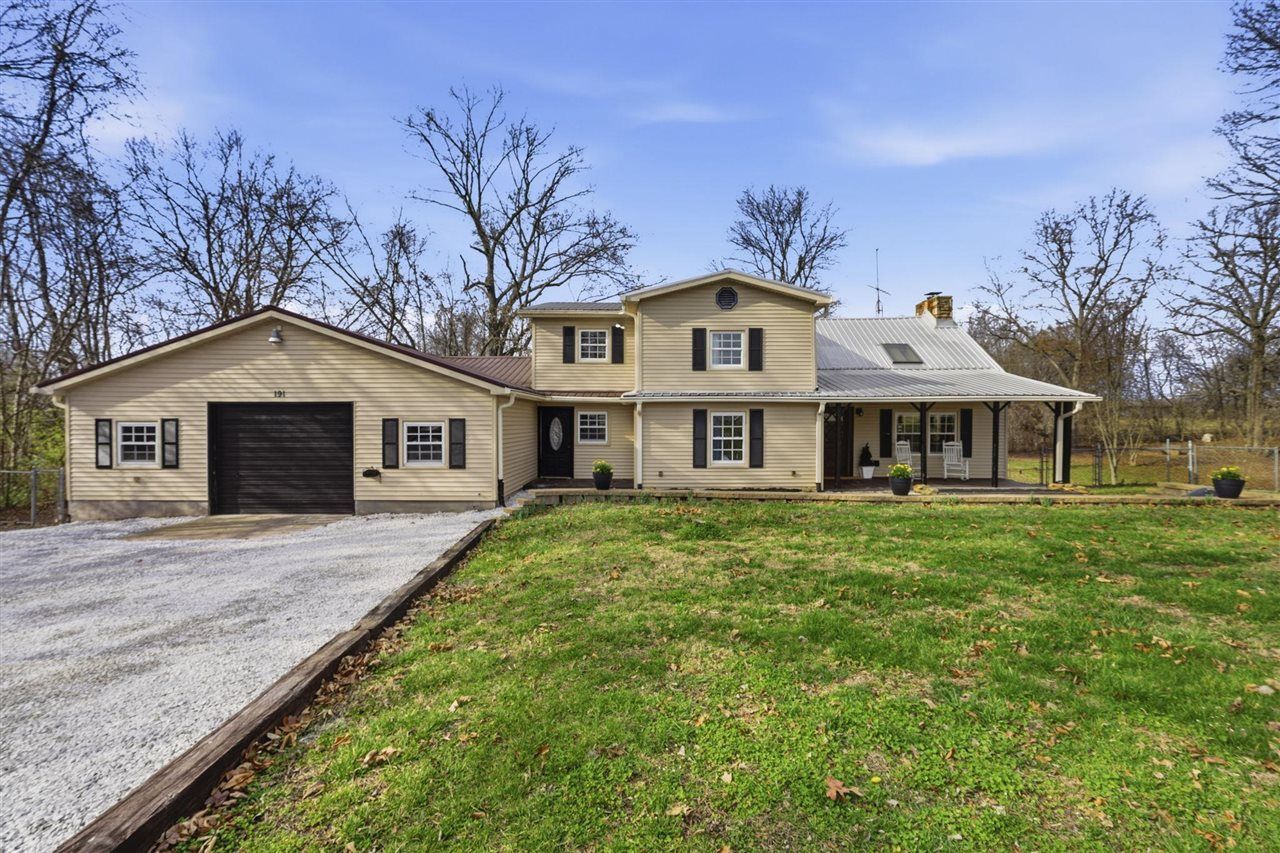 Hate cookie cutter? Then place 191 Evans Rd at the top of your list. This gorgeous property makes you feel like you're on the best lake or mountain vacation every day. Set on 1.3 acres, this home features real log/wood construction and boasts a 2 story great room with full height stacked stone wood burning fireplace that's a show stopper as soon as you walk in the front door. Sky lights bring in lovely natural lighting to compliment the deep set windows on the first floor. Easy care flooring is laid throughout the home, and the discerning buyer will appreciate the extra space offered here. Not only does the property have 5 bedrooms and 2 baths, but the upstairs is thoughtfully designed with a large recreation room/den perfect for the family & friends hangout spot. There's an additional bonus space off the primary bedroom ideal for a home gym, office, or private sitting room or study. The attached garage is larger than it looks with room for 3-4 vehicles plus a potential shop area on the back. Move to the outside and enjoy the covered front porch and back deck areas plus a fully fenced rear yard. As a bonus, right around the corner on Saddler Ford Rd is access to Drakes Creek to meet all your fishing and kayaking needs. Easy access to South Warren/Bowling Green (11 min) or downtown Franklin (15 min). USDA eligible for 100% financing (with qualification). Welcome home to 191 Evans Rd!