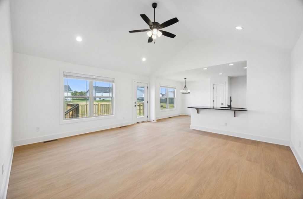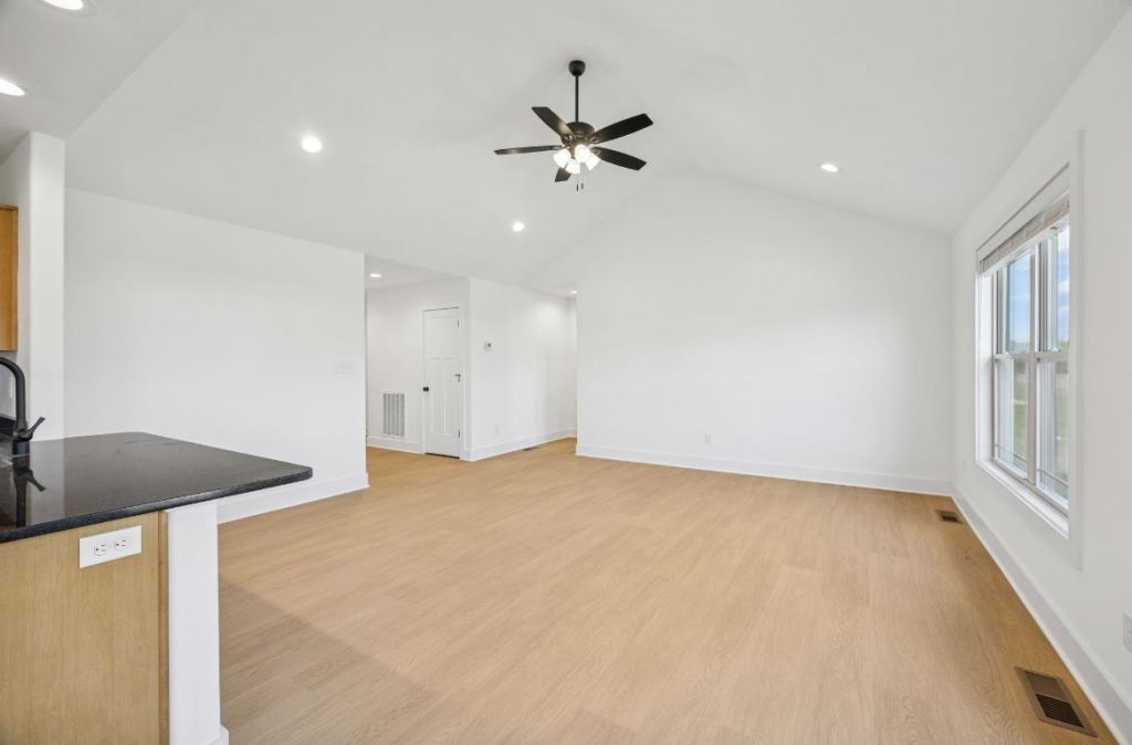 Beautifully designed 4 bedroom, 2 bath, split-bedroom home featuring LVT flooring throughout and vaulted ceilings that create an airy, open feel. The kitchen offers rich wood cabinets, sleek black granite countertops, and a handy pantry. Primary suite highlights include a tray ceiling, walk-in closet, double vanity, and walk-in shower. Additional bath has tub/shower combo and double vanity. Seller is a Kentucky licensed real estate agent. HOA information in attached documents.